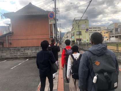 2日目の午前は「外国の人に別府を売り込むためのチラシを作成しよう!」というお題で、別府駅周辺と地獄めぐりで有名な鉄輪地域に分かれて、フィールドワークを行いました。最初は緊張した様子でしたが、後半には、国際学生と楽しそうに話しながら街の魅力を探索する姿を見ることができました。