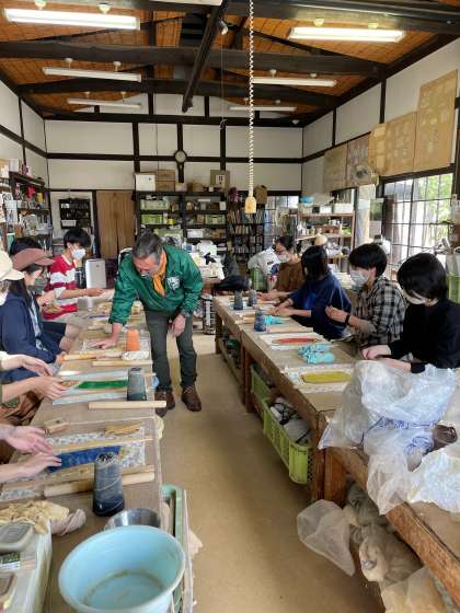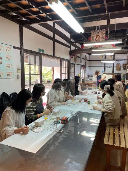 その後は、クラフトパークで、木箱に花の色付けをしていく花手箱作りやコップの陶芸体験をしました。生徒たちは、それぞれにオリジナルの模様をコップにつけていました。焼き上がりがとっても楽しみです。