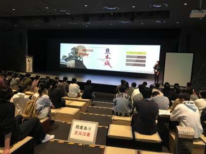 ボランティアのツアーガイドと一緒に散策する熊本城ガイドツアーと、熊本城ミュージアムで熊本城について学ぶわくわく座プログラムの2本立てです。熊本城400年の歴史、難攻不落と呼ばれた様々な工夫、そして5年前の熊本地震による被害についても実体験を交えたお話を聞き、防災についても考える機会になりました。