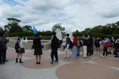 まず長崎平和公園を散策し、ガイドの説明を聞きながら平和祈念像や平和の泉などを見学しました。