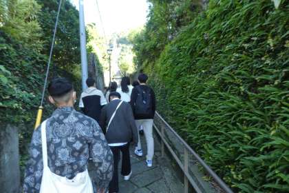 長崎市内の坂や施設を巡りながら大学生が出題するクイズに取り組んだり、長崎に在住する方へのインタビューも交えながら、長崎の歴史や地理についての見識を深めました。