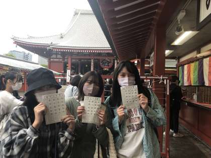 6組は浅草寺でお参りし、おみくじを引きました。