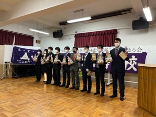 野球で培った経験を財産に変えて大学受験,第一希望合格を目指し,今後の奮闘を大いに期待します。また,今年度末までは野球部員としての自覚と責任を忘れず過ごして下さい。