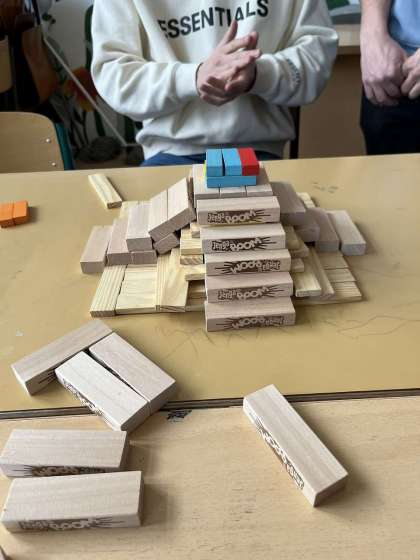 【写真右】文化祭の出し物(写真を見て積み木で再現します)