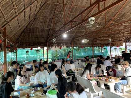 中州に移動するまでの川が大きく、船乗ってみんなで写真を撮りながら行けて楽しかった。