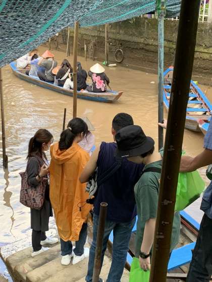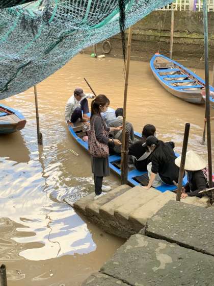 また、基本的にボートは船頭の方が漕いでくれますが、自分たちでも漕がせてもらえました。想像よりも、漕ぐのが難しかったり、力が必要だったりして、悪戦苦闘しながらボートを進めていきました。スリルもありつつ、川をボートで風を切りながら進んでいく、心地よい体験ができました。