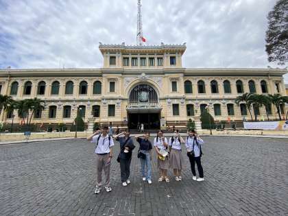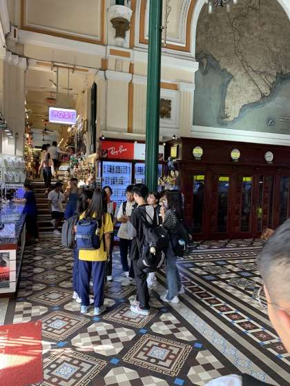 縛りは3つのチェックポイントを周るだけで、それ以外は自由に各班でプランを考えて散策して行きます。綺麗な街並みを見ながら、様々な場所で観光や食事を楽しみました。レ・ホン・フォン高校の生徒さんも、紫高生の英語や日本語を真剣に聞きとって、行きたい場所や食べたい物に案内してくれました。