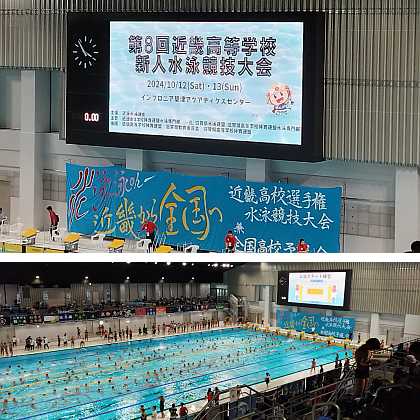10月12日(土)13日(日)に滋賀県草津市にあるインフロニア草津アクアティクスセンターで、第8回近畿高等学校新人水泳競技大会が開催されました。本校からは9月に行われた京都府予選を勝ち抜いた1名が出場しました。