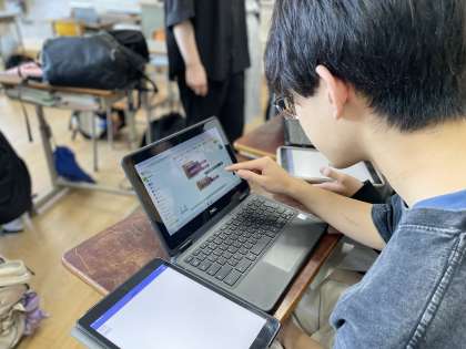 最後の演習では「ペアの人が喜びそうなサイトにアクセスできるようなアプリ」を作成しました。「京都の美味しい和菓子屋」「おすすめの筋トレ方法」「一度は行きたい神社仏閣」など、ペアの人がどのようなことに興味関心があるのかに思いをめぐらしながら、生徒たちは夢中で取り組んでいました。