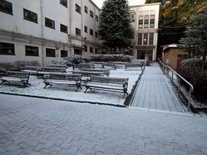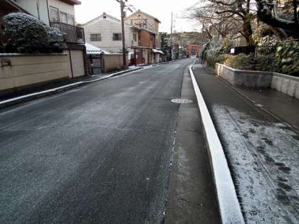 1月18日午前8時現在、学校前の道路は一部凍結しています。