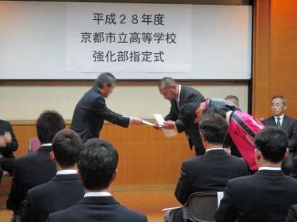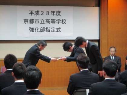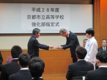 4月21日(木)16時30分から、京都市総合教育センターにて、京都市教育委員会による京都市立高校強化部の指定式が行われました。