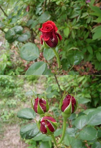上:中庭のバラのつぼみ 中・下:クラブ活動の様子