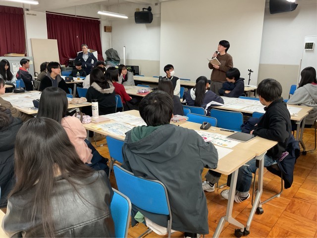 次に語られたのは、「与える側」と「共に創る側」の違いです。支援という言葉には、無意識に「教える」「してあげる」という姿勢が入り込みやすいことがあります。しかし、相手にとって“もらうこと”が当たり前になってしまうと、対等な関係が崩れてしまうことがある。実際の経験として、現地のグループと協力していた際に「あなたのやりたいことに付き合っているのだから給料を払ってほしい」と言われて衝撃を受けた、というお話も共有されました。ここから生徒たちは、「どうすれば相手も自分も『自分のこと』として一緒に取り組めるのか」という問いを受け取り、提案を“支援”として考えるだけでなく、“関係づくり”として捉え直す必要があることに気づいていきました。