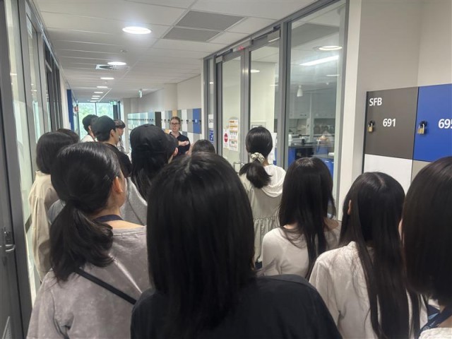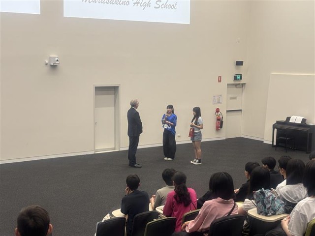 1時間目のウェルカムセレモニーでは語学学校の方々に挨拶と記念品の贈呈を行い、グループに分かれてキャンパスの見学に参加しました。生徒たちは日本と違う学校の雰囲気に驚き、オーストラリアに来たことを改めて感じていたようです。