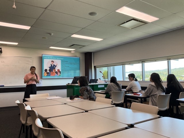 7日目の午後は、First Nationsの学習と語学研修の続きでした。明日の最終日に行うプレゼン「私のオーストラリア体験」に向けて、プレゼンの構成要素、原稿作成のコツ、発表の留意事項について理解を深め、実際に原稿を書き始めました。