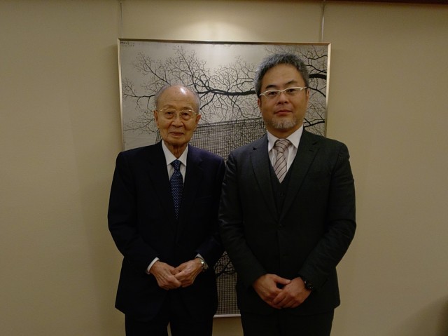 【写真は昨年末、明石康先生の東京の事務所を訪問されていただいたときのものです。】