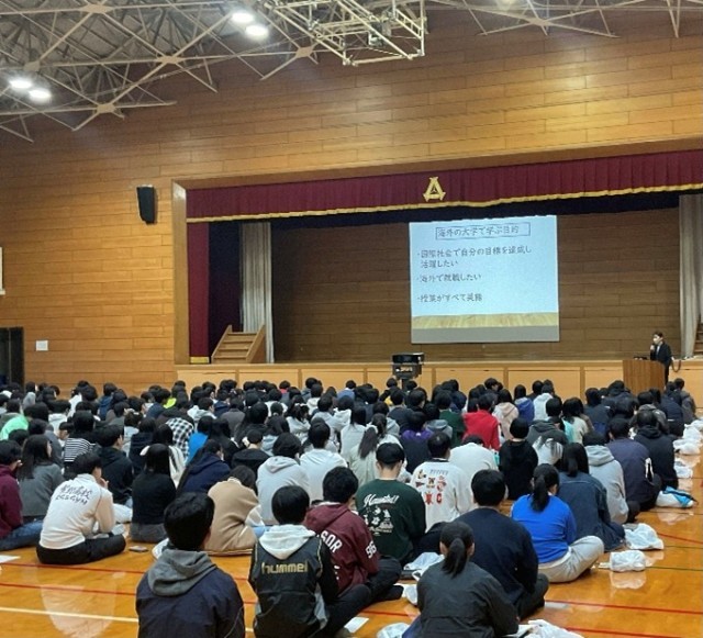 また進路部長の林先生より、本校の進路指導の方針やこれまでの進学実績に加え、この一年間を過ごすにあたっての心構えについて説明があり、さらには海外大学への進学に関する説明も行われました。