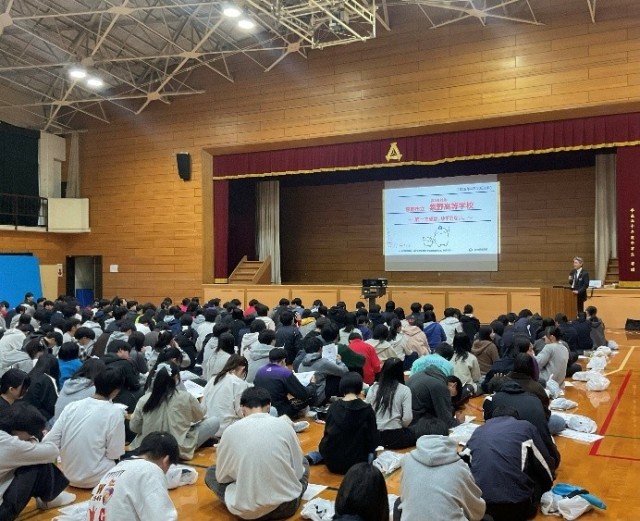 4月10日(金)、駿台より講師の先生をお招きし、2・3年生を対象とした進路オリエンテーション・講演会を実施しました。講師の阿南様からは、大学入試の最新動向や効果的な学習のポイントについて、具体的なデータを交えながらご講話いただき、生徒たちは真剣な表情で耳を傾け、メモをとっていました。