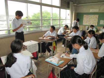 今回は聞き手との間に英語による質疑応答も含めたため、最初は発表者と聞き手のどちらも緊張した様子でしたが、同じクラスの仲間同士なので、お互いに「伝えたい」という気持ちと「受け止めたい」という気持ちで教室は満たされ、すぐに和やかで楽しげな雰囲気となりました。