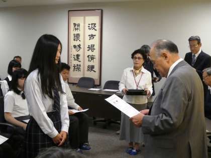 奨学生たちは,「奨学生としての自覚を持って勉学に励み,夢を実現できるように頑張ります。」など,それぞれが自分の言葉で感謝と決意を力強く表明していました。