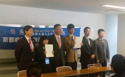 本校生徒を代表して、2年生の岡崎愛香さんが中国駐大阪総領事から日中友好交流大使の証書と任命状を受領しました。