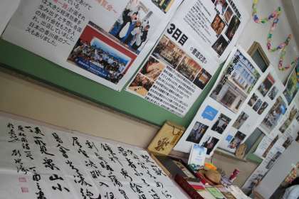 205号教室では、夏休み中に中国の西安市、長沙市、そしてイギリスのロンドンを訪問した3チームの合同企画として、現地での様子やお土産の展示を中心とした報告イベントがありました。来場者に配布するポストカードが早くも初日になくなるほど、多数の方々が見に来ていました。