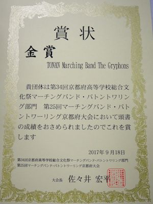 Gryphonsが京都府大会で金賞を受賞