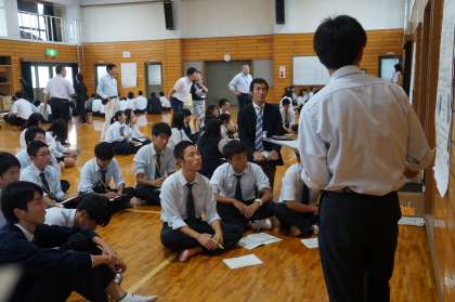 「『走れメロス』は勉強すべき?」「英語学習は年齢が早いほど良いのか?」など、様々な教育課題をテーマに、皆、一生懸命発表しました。なかでも、“高校の義務教育化”を主張する発表と“高校はいらない”と訴える発表とがすぐそばで行われる場面があって興味深く、それぞれの聴衆との議論も盛り上がりました。