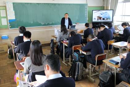 企業等訪問の事前学習として,一般財団法人アーツシード京都支配人の蔭山陽太様,株式会社ケイヤマ商店取締役の慶山大輝様,丸福産業株式会社代表取締役社長の出野哲也様をお招きし,ご講演いただきました。経営者の方々がどのようなことを考えておられるのか,また高校時代に学んだことや経験したことが今どのように活きているのかなど,普段の学校生活では知ることができないことを聞くことができました。