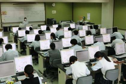 本授業は,本校東隣りにある吉祥院図書館2階の多目的室にて,2時間連続の授業として実施しております。1時間目は講義中心で,2時間目はコンピュータを使った実習を取り入れて行っております。