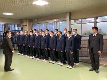 その後,「京都の高校野球の代表として今後もチームを作り上げてください」との激励のお言葉を京都府高等学校野球連盟の砂田浩彰会長からいただき,本校の小野恭裕校長が「学内を野球部が引っ張り,更に模範となるようにしていきたい」と謝辞を述べました。