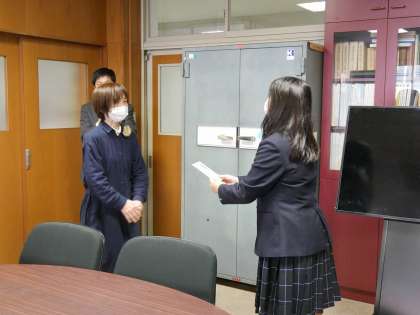 11月20日(土),塔南高校応接室にてPTA・同窓会の皆さまに第49回マーチングバンド全国大会に出場する吹奏楽部Gryphonsの激励会を開催していただきました。