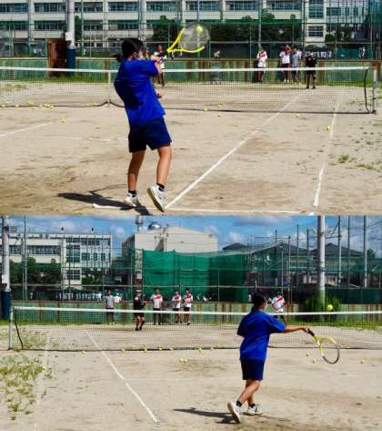 午前の部では、硬式テニス部に3名、陸上競技部に18名の中学生とその保護者の皆さんが参加して下さいました。高校生部員とともにトレーニングや練習メニューに取り組んで、日常の活動の雰囲気を感じていただきました。