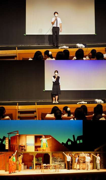 9月7日(水)長岡京記念文化会館で文化祭1日目団体鑑賞(一般社団法人劇団自由人会 演劇「夢をかなえるゾウ〜青春ロボット編〜」)を実施いたしました。