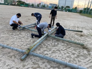 いただいた竹材を使って、体育大会(10月13日)のあるものの制作が進んでいます。