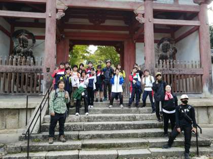 本校、防災ボランティアリーダー15名(男子1名、女子14名)が、醍醐方面へ防災登山に行ってまいりました。本校で教鞭をとっていただいたこともある理科の青戸先生に講師をお願いし、醍醐寺から横峯峠を通り高塚山山頂を経て下山するルートを選定いただきました。