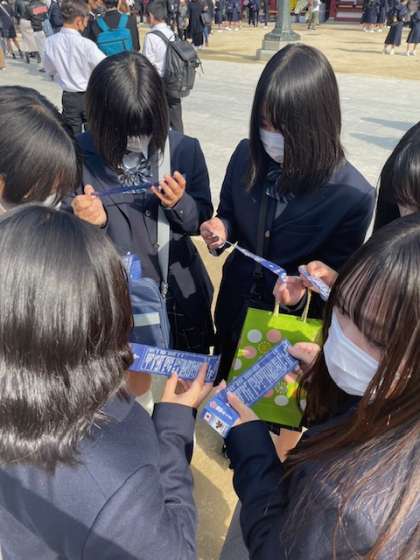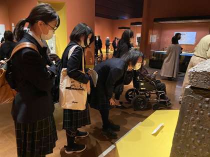 また、太宰府近くの九州国立博物館では、ポンペイ展が開催されていました。古代ローマの文化的な遺物を直接目にして、授業で学んだことと繋げて会話がはずんでいました。案化したパンや、多数のモザイク画など、興味深い展示物を見て、世界史の学びのモチベーションにつながっていました。