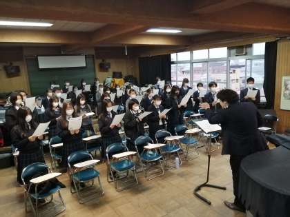 1月13日、塔南高校音楽室にて開建高校の校歌の練習会を行いました!