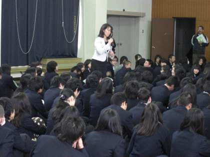 ージをいただきました。学生の間は、生きる力を身につける準備期間ととらえて、将来、社会や周囲に貢献する充実した人生を送るため、「高校卒業までに学ぶ10のこと」を教えていただきました。また、「フリーター」という生き方のリスクについてもお話しいただきました。