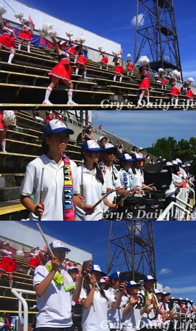 応援も4回目,わかさスタジアム京都も3回目です。球場へ着いてからの移動と待機,スタンドでのセッティング,チューニングなどの準備等々,全て順調に進みます。野球部員との息もピッタリ合っています。