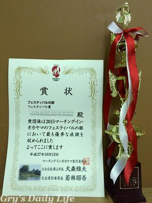木管楽器が含まれるため,フェスティバル部門にエントリーしたGryphonsは,同部門最優秀賞である「フェスティバル賞」を獲得しました。