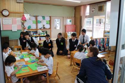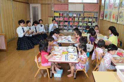 6月28日(火)および30日(木)、本校普通科3年生「子どもの発達と保育」の選択者が祥南保育園に訪問して、園児の皆さんの様子を見学し、乳幼児との関わり方を保育士の先生から学ぶ取組を行いました。子どもたちと同じ目線で話しかけることの大切さや、先生方の子どもたちへの声かけの様子から年齢による発達の違いを学ぶことができました。将来、保育士をめざしている生徒は、中途半端な気持ちではできない職業であることを改めて感じていました。祥南保育園の皆様、本当にありがとうございました。