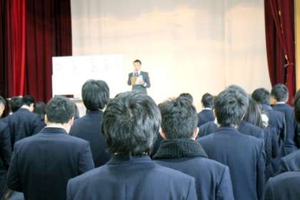集会では,学年主任の八田先生から,卒業式までの登校日の予定と,受験に向けて,今まで努力してきたことを信じて最後まであきらめずに頑張るようにと話がありました。