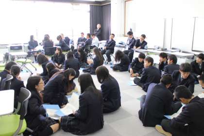 1年生普通科の「総合的な学習の時間」(以後総学)は毎週火曜日にアクティブラーニング教室(AL教室と呼んでいます)で行っています。今年度からリニューアルした総学ですが、NPO法人あすいろにご協力いただいております。