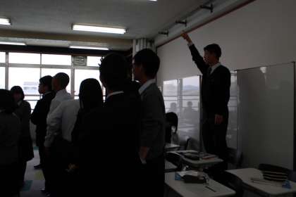 今回の始まりは、クラス全員で力を合わせることから始まりました。だんだんクラスの仲間にも慣れてきて、手を挙げ大きな声を出し、クラス全員で頑張りました(写真左・右)。