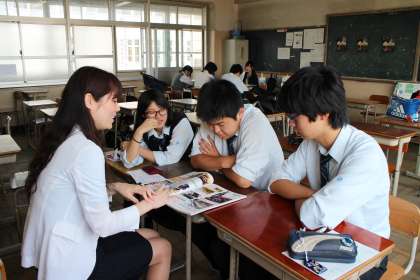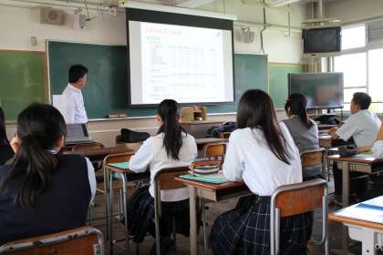 パワーポイントや黒板を使ってのお話を聞き、一生懸命にメモを取る生徒、講師の先生を囲んで和やかにお話しする生徒、真剣な表情で講師の先生のお話を聞く生徒、目を輝かせてお話を聞く生徒など、生徒の反応はさまざまでした。