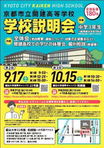 9月17日(土)に第2回学校説明会を,龍谷大学で開催します。