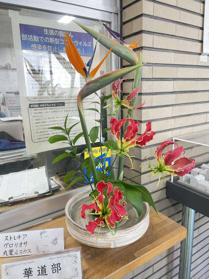 生徒のみなさん、来校してくださる皆さま、是非、華道部の生け花をお楽しみください。