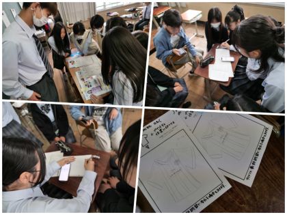 カタログを見たり、参考となるデザインをネットで探したりしながら、自分たちのクラスのデザインを用紙に記入していきます。