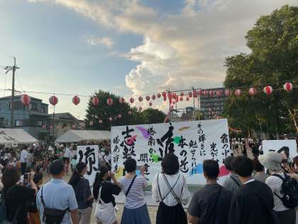8月19日(土)、西寺公園で実施された「令和5年盆おどり」で書道パフォーマンスを披露する機会をいただきました。